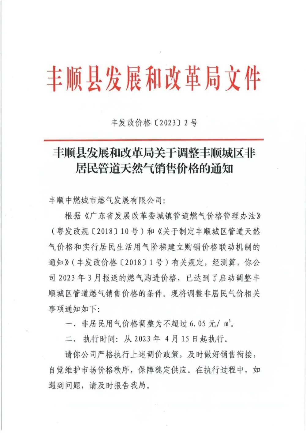 丰宁满族自治县建宁燃气关于天然气价格调整的公示