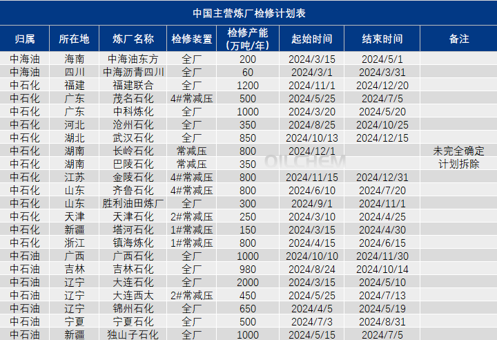 相关:成品油 | 主营检修增加民营原料紧张 2024年产量看跌