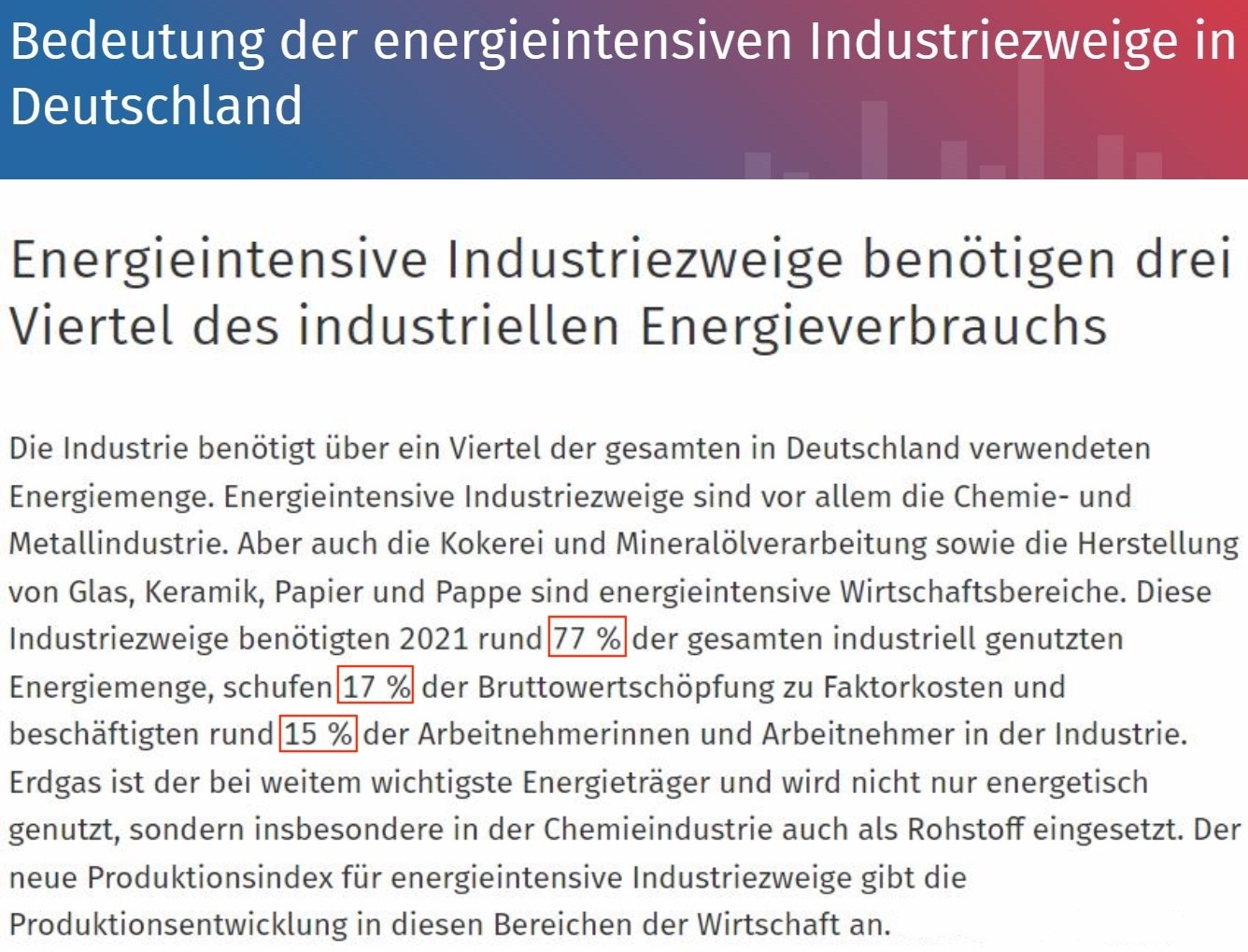 据统计,直到乌克兰危机全面升级之前的2021年,这些行业大约要消耗德国77%的工业能源,以要素成本计算创造了17%的总增加值,雇佣了约15%的工人。