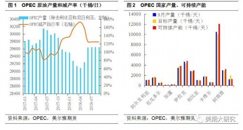 供给端: 9月,伊朗原油出口遭受重创,沙特、利比亚增产抵消伊朗等国减产影响,OPEC连续7个月增产,沙特等国剩余产能趋紧。