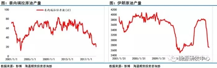 原油市场因为减产超预期,美国增产低于预期的综合平衡之后已经从过剩转变为供应紧张的局面。这时候地缘动荡稍有波动就必然会被市场放大。近期利比亚国内动荡一度提振油价,而今年以来美国对伊朗、委内瑞拉的制裁在年内不断为反弹助力,下图显示2019年以来2个国家产量继续刷新低点5月份马上迎来的伊朗制裁豁免问题也会持续刺激市场。