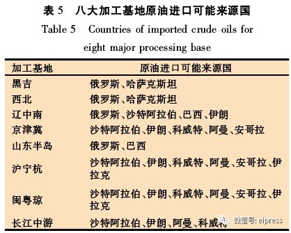 八大石化提炼加工基地的原油进口来源国情况如表5所示。