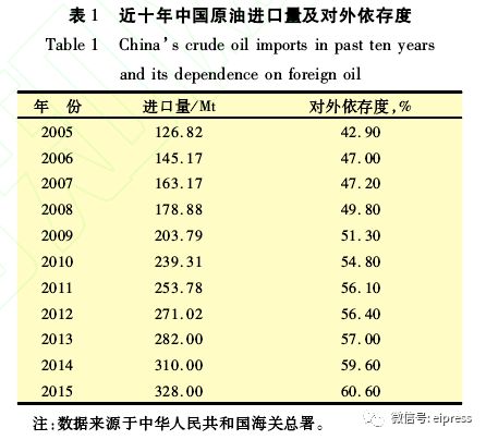 进口原油总量与国内消耗总量比值被称为原油依存度,其表征对进口原油的依赖比重。由于中国原油对外依存度不断增加,这也说明了中国需要进口更多的原油来满足自身发展。