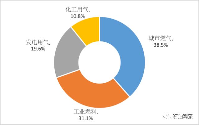 2018年,中国天然气四大消费领域用气结构预测如下: