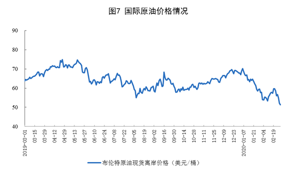 原油生产保持增长,加工量下降。1—2月份,生产原油3200万吨,日均产量53.3万吨,同比增长3.7%;进口原油8609万吨,同比增长5.2%;加工原油9919万吨,日均加工165.3万吨,同比下降3.8%。国际原油价格大幅下跌,2月28日布伦特原油现货离岸价格为51.3美元/桶,比上年12月31日下跌16.5美元,跌24.3%。