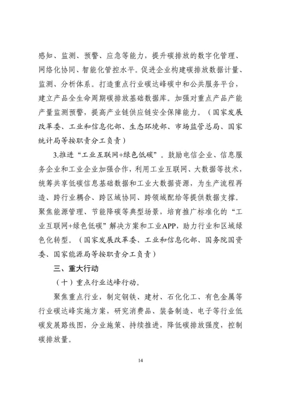 《工业领域碳达峰实施方案》已经碳达峰碳中和工作领导小组审议通过,现印发给你们,请认真贯彻落实。